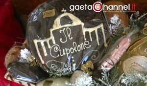 Sugli scaffali, poi, fa bella mostra di sé il panettone "Re Ferdinando II" con il suo doppio strato di pasta alle mandorle caramellate e l'originale ripieno di melenzane candite e amarene. Inconfondibile la busta giallo oro con il ritratto del Re che fece tanto per Gaeta e che si distingue dal bustone rosso vivo contenente invece il "Cupolone" al cioccolato fondente, pazientemente decorato a mano con il cioccolanto bianco che ripropone la sagoma del Vaticano.