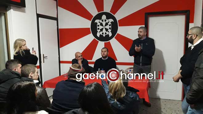Il vicepresidente nazionale di CasaPound Simone Di Stefano a Gaeta VIDEO Sede "Torpedine" gremita, presentato il candidato a Sindaco Mauro Pecchia